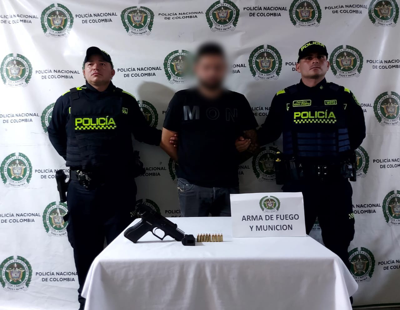 El procedimiento se llevó a cabo hacia las 10:45 de la mañana, cuando los uniformados adelantaban planes y controles diferenciales en el barrio las Brisas vía principal, en el municipio de Palocabildo. Durante la actividad operativa fue capturado en flagrancia un ciudadano de 31 años, quien se movilizaba en el vehículo tipo camioneta color blanco a quien, mediante registro personal y a automotor, se le halló en su poder un arma de fuego tipo pistola calibre 9 milímetros, con un proveedor y nueve cartuchos sin percutir, para la cual no contaba con permiso para porte o tenencia.